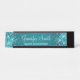Parties scintillant turquoise fillette faux brillant sur les bords latéraux sur un dégradé bleu foncé arrière - plan La couleur principale de la parties scintillant décorative effets numériques, ombre graphique et élégante calligraphie sont turquoise foncé, bleu turquoise et blanc. Plaque de bureau personnalisée avec place pour le nom et le titre de l'emploi. Le style et la taille de la police peuvent être modifiés si nécessaire.