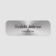 Cette balise de nom d'apparence en métal brossé contient du texte d'affichage noir. Vous modifiez le texte pour afficher le nom et le titre professionnel du destinataire. Le look métal brossé est un rendu artistique.