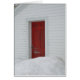 Porte rouge de ferme en hiver