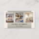Business card featuring 4 of your own photos in a portfolio of your favourite projects, framed by a neutral grey design on your custom background colour. This business card can easily be adjusted for other professions.