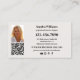 Interior design business card featuring a photo grid with your custom photos and logo on the front. On the back is your own portrait photo as well as a QR code and social media information. The background colours as well as text background (sizes) can be changed in the advanced editor. The social media icons can be replaced or deleted according to your needs. This business card is great to show your customers some of your work.