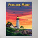 A classic white lighthouse stands tall on a rocky coast, bathed in the warm glow of a vibrant sunset over the ocean.
