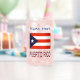 Design on can glass avec le drapeau portoricain avec les mots PORTO RICO sous le drapeau, dans les mêmes couleurs. Ci-dessus, en lettres bleues, un lieu pour votre nom, en lettres bleues, pour la personnalisation ou pour créer un cadeau spécial. Un cadeau amusant pour le ménage pour vos Portoricains préférés. Les groupes de voyageurs apprécieront. Cool à utiliser lors de réunions de famille. Un cadeau amusant pour maman ou papa pour la fête des mères ou la Fête des pères.