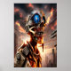 A portrait of a cyberpunk skeleton with a high-tech blue eye. This is a AI generated art.