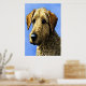Portrait d'une Airedale Terrier adorable et mignonne sur un arrière - plan bleu. C'est un art généré par l'IA.