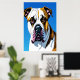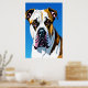 Portrait d'un adorable et mignon chien américain Bulldog sur un arrière - plan bleu. C'est un art généré par l'IA.
