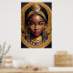 Portrait d'une jeune belle reine africaine aux longs cheveux noirs avec bijoux dans les cheveux, les oreilles et autour du cou. C'est un art généré par l'IA.