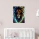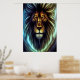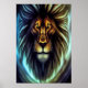Portrait d'une tête de Lion avec une crinière foncée. C'est un art généré par l'IA.