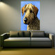 Portrait of a cute and adorable Airedale Terrier on a blue background. This is a AI generated art.