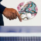 Portrait of a beautiful whimsical pink dragon head ping pong paddle
