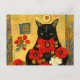 Porträt einer schwarzen Katze im Jugendstil Design Postcard