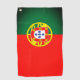 Golf towel with the image of the Portugal Flag in colours of red, green and yellow.