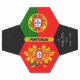 Patriotic Portugal soccer ball featuring Portuguese Flag, emblem - modern design with easily customized message and optional one or two photographs simply added by using personalized button (activate photos in edit, if you wish to use).