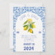 Capture the essence of a romantic Portugal wedding with this exquisite invitation featuring intricate blue tiles and vibrant lemons. The combination of traditional Portuguese design and the refreshing citrus motif creates a unique and unforgettable wedding theme. Share your special day with friends and family through this beautifully designed Portugal wedding invitation that perfectly reflects the charm and elegance of the destination. Celebrate your love story with a touch of Portugal's beauty and zest!