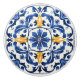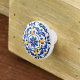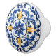This elegant ceramic knob features a Portuguese azulejo pattern in blue with yellow highlights on a white background.