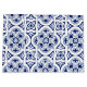 This product has an intricate design with a dark blue background and white ornamental patterns. The design is reminiscent of traditional ceramic or porcelain styles, which may interest those who appreciate classic or vintage aesthetics.