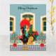 The Portuguese Rooster stands in front of the house holding a carefully picked Christmas present that he's about to deliver. The act captures the essence of the season, the joy of giving. This whimsical illustration embraces the true spirit of the season in Portugal. In addition to the friendly Galo de Barcelos, this product has blue and white tiles. As this item is intended to send greetings of a Merry Christmas, they have holly leaves and berries as well as floral motifs. All text is personalizable and there's a family photo inside.