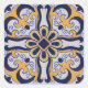 Portuguese tile pattern design with blue, white and yellow floral decoration