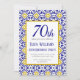 Portuguese tiles, blue, white and yellow pattern, rustic Azulejo, Mediterranean 70th Birthday party invitations. Personalize it with your details.