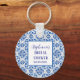 Portuguese tiles, blue, white and yellow pattern, rustic Azulejo, Mediterranean Bridal shower keychain. Personalize it with your details.