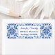 Beautiful, elegant bride and groom Wedding Return Labels. Portuguese tiles, vintage floral pattern, blue and white, Spanish, trendy design. You can personalize with your names and address.