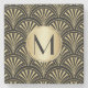 Posh Black and Gold Deco Fans Monogrammed Stone Coaster