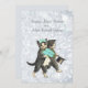 Adorable Wedding Cats invitation. Sweet vintage bride cat holds an aqua rose wedding bouquet and Groom cat struts beside her with his black top hat. Silver Grey sparkle background. Customize front and back of this invitation with your names and wedding information.