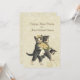 Adorable customizable floral damask Wedding invitation. Sweet vintage bride cat holds a white rose wedding bouquet and Groom cat struts beside her with his black top hat. Ivory white floral damask background. Customize front and back of this invitation with your names and wedding information.