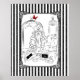A ladies dressing room framed by a vintage style ornate frame with distressed black striped background.