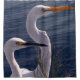 This Shower Curtain features an original photograph by ZoeSPEAK of two white, long necked shore birds posing by the deep blue waters of the ocean. The bird with the long, pointed black beak is a snowy egret. The bird with the long, pointed yellow orange beak is a great egret.