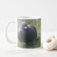 This coffee mug features a photograph of a wild Pigeon taken in my back garden. The bird was pecking about in the grass looking for seed that had been knocked off a bird feeder. The iridescence of the feathers is clearly visible in the photo. The design is shown here on a basic white mug, but is also available on other styles and colours of mugs.