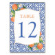 Positano Citrus Oranges Antique Blue Tiles Wedding Table Number