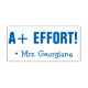 This encouraging rubber stamp design features the positive message "A+ EFFORT!" and a personalized teacher's, educator's or tutor's name. It could be used by a teacher or educator when marking assignments, to acknowledge that the student has done well.