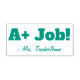 This motivating rubber stamp design features the message "A+ Job!" and a customized teacher name. It could be used by a school teacher, educator, or tutor when grading student work, to indicate that a student has done an exceptional job.