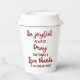 This paper cup has fancy script text that says, "Be joyful always. Pray continually. Give thanks in all circumstances". This would be a great cup to have at your Bible study, youth group meeting or at any gathering with a focus on religion or spirituality. Other such items are in my "Spiritual Inspiration and Encouragement" collection.