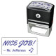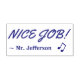 This fun rubber stamp design features the motivating message "NICE JOB!" and a personalized teacher name. It also features a decorative musical note. It could be used by a teacher or educator when marking assignments, to acknowledge that the student has done a great job.