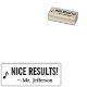 This fun rubber stamp design features the motivating message "NICE RESULTS!" and a personalized teacher's name. It also features a decorative musical note. It could be used by a teacher or educator when grading student work, to acknowledge that a student has done an exceptional job.