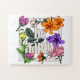 Positive quote Be Happy and garden flowers Jigsaw Puzzle