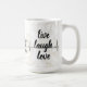 Commencez votre journée avec une bonne dose de positivité en utilisant cette élégante tasse blanche avec l'expression inspirante "Live Laugh Love" accentuée par une ligne de battement de coeur. Sa typographie noire minimaliste sur un arrière - plan blanc épuré le rend parfait pour le café, le thé, ou comme un cadeau réfléchi. Un rappel élégant pour profiter de la vie, chérir le rire et embrasser l'amour tous les jours. Idéal pour la maison, le bureau, ou comme un cadeau significatif pour les amis et la famille.