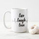 Start your day with positivity using this elegant white mug featuring the inspirational phrase “Live Laugh Love” accented by a heartbeat line design. Its minimalist black typography on a clean white background makes it perfect for coffee, tea, or as a thoughtful gift. A stylish reminder to enjoy life, cherish laughter, and embrace love every day. Ideal for home, office, or as a meaningful present for friends and family.