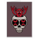 Illustration vectorielle d'un démon qui monte d'un crâne avec des gestes de corne de diable en métal lourd.