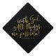 A classy and elegant graduation cap topper featuring the Bible verse "with God, all things are possible" Matthew 19:26 in faux gold elegant hand lettered style script font. Click "customize" to edit the background colour.