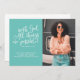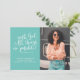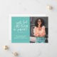 A modern Christian graduation announcement card, featuring the Bible verse Matthew 19:26 "With God all things are possible" in white modern script font, on a teal background that can be edited by clicking 'customize further', next to a photo of the graduate. Personalize with graduation details in white sans serif font.