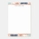 The design incorporates abstract floral patterns in shades of blue, peach, and white. A rose gold border frames the main writing area, which includes placeholder text for customized names. You can easily modify the text, font, and color palette to suit your preferences.