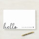 Un design de post-it note minimaliste avec un script manuscrit stylisé, une grande phrase typographique "bonjour" associée à votre propre nom et un simple coeur noir. Conçu dans un style mininaliste moderne, en noir et blanc simple et propre. Le cadeau ou accessoire personnalisé parfait pour n'importe quelle période de l'année!