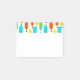 Ce bloc-notes Post-It a un design moderne du milieu du siècle de longs ovales en jaune, orange, vert et turquoise avec des lignes noires avec des cercles sur les extrémités.