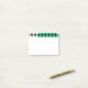 Ce bloc-notes Post-It a un design moderne du milieu du siècle de diamants noirs solides à l'intérieur des contours en losange noir avec des triangles dans les tons vert de mer sous eux, le tout sur un champ de blanc.