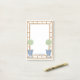 Cette pochette chic de notes présente un topiaire d'olive rond avec un arc rayé bleu et blanc dans un pot de chinoiserie. La bordure autour du bord est un cadre en bambou. Vous pouvez personnaliser avec votre nom.