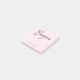 Ces élégantes notes rose et noire disent "Bonjour" en français, en écriture moderne chic, avec votre nom en bas dans le texte classique.