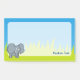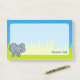 Caricature d'éléphant gris mignon sur l'herbe et l'arrière - plan du ciel. Texte personnalisé.
